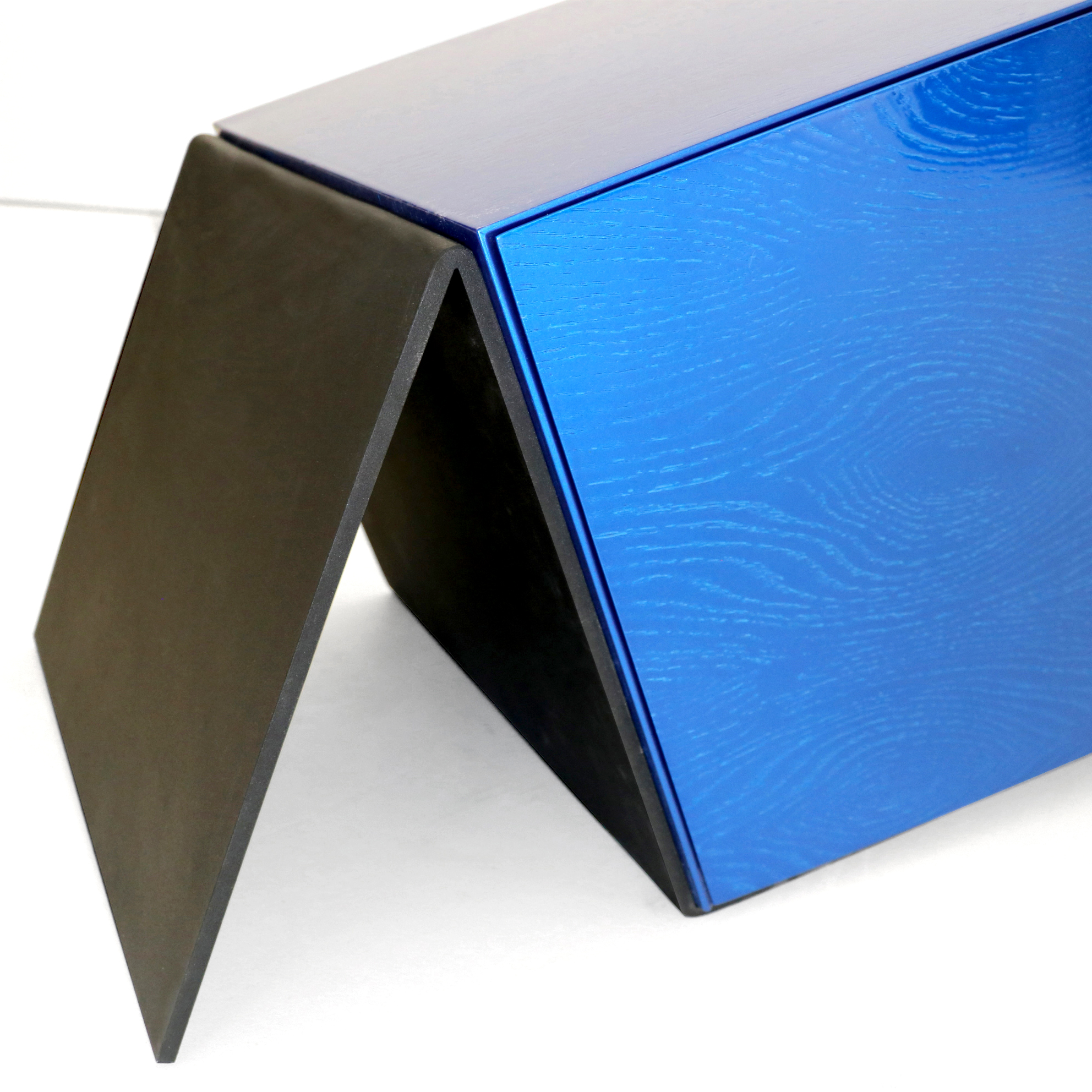 Realizata din Mdf furniruit cu imbinari  invizibile si fronturi frezate cu inchideri la 45 de grade fac din aceqasta o piesa veritabila, o sculptura care completeaza intr-un mod frumos un interior minimalist.