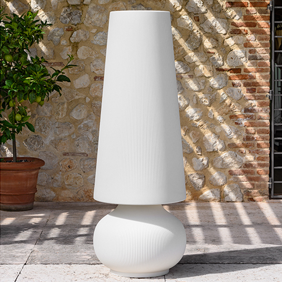 Cu o înălțime impunătoare, lampa Fade își face simțită prezența, atrăgând privirile și emanând o lumină plăcută și reconfortantă. Această lampă este rezistentă la intemperii, fiind ideală pentru a completa atât spațiile exterioare, precum terasele sau grădinile, cât și interioarele sofisticate. Fie că este vorba despre a lumina o cale în curtea din fața casei sau despre a aduce un plus de rafinament într-un living spațios, lampa Fade este alegerea perfectă pentru cei care apreciază frumusețea și funcționalitatea în același timp.