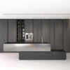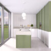 Mobilierul bucătăriei minimaliste este realizat din materiale de înaltă calitate, de la carcase, fronturi sau blaturi care aduc un aer de rafinament și o estetică superioară. Designul sobru și liniile curate definesc această bucătărie, în timp ce culorile neutre și accentele discrete completează decorul.